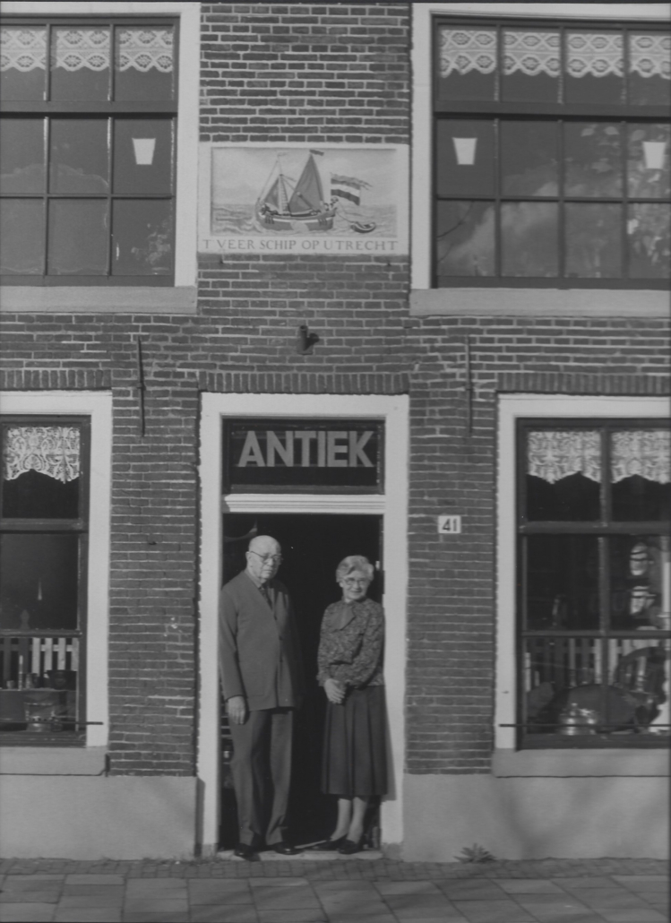 Johannes en Weina voor hun antiekzaak in Zwolle.