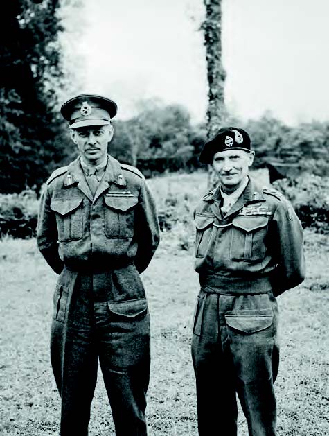 Lieutenant-General Dempsey (L) met General Montgomery, CO 21st Army Group, in Frankrijk op 16 juli 1944 (IWM, B 7405).