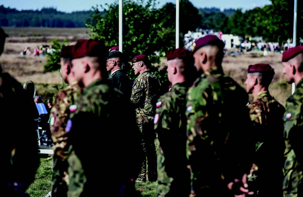 Cas Schreurs, tijdens het interview in het nieuwe camouflage-uniform van de krijgsmacht, maakt een ontspannen, ‘on-top-of-things’-indruk. De staatssecretaris voor Defensie komt zo langs. Om kennis te maken heet het officieel, maar het gesprek zal zonder twijfel gaan over mensen, materieel en middelen. Schreurs knipoogt erbij. Er zal het nodige te bespreken zijn als commandant van een snel inzetbare infanteriegevechtseenheid. De ontwikkelingen in de Oekraïne springen in gedachten, maar geopolitieke speculatie, laat staan de invloed daarvan op 11 LMB, is niet het onderwerp van ons gesprek. Binnen deze context voelt een onderhoud over de band van de brigade met de inzet van de 1st Airborne Division tijdens de Slag om Arnhem bij voorbaat terloops aan. Mijn gesprekspartner lijkt er niet om te malen en steekt routineus van wal.