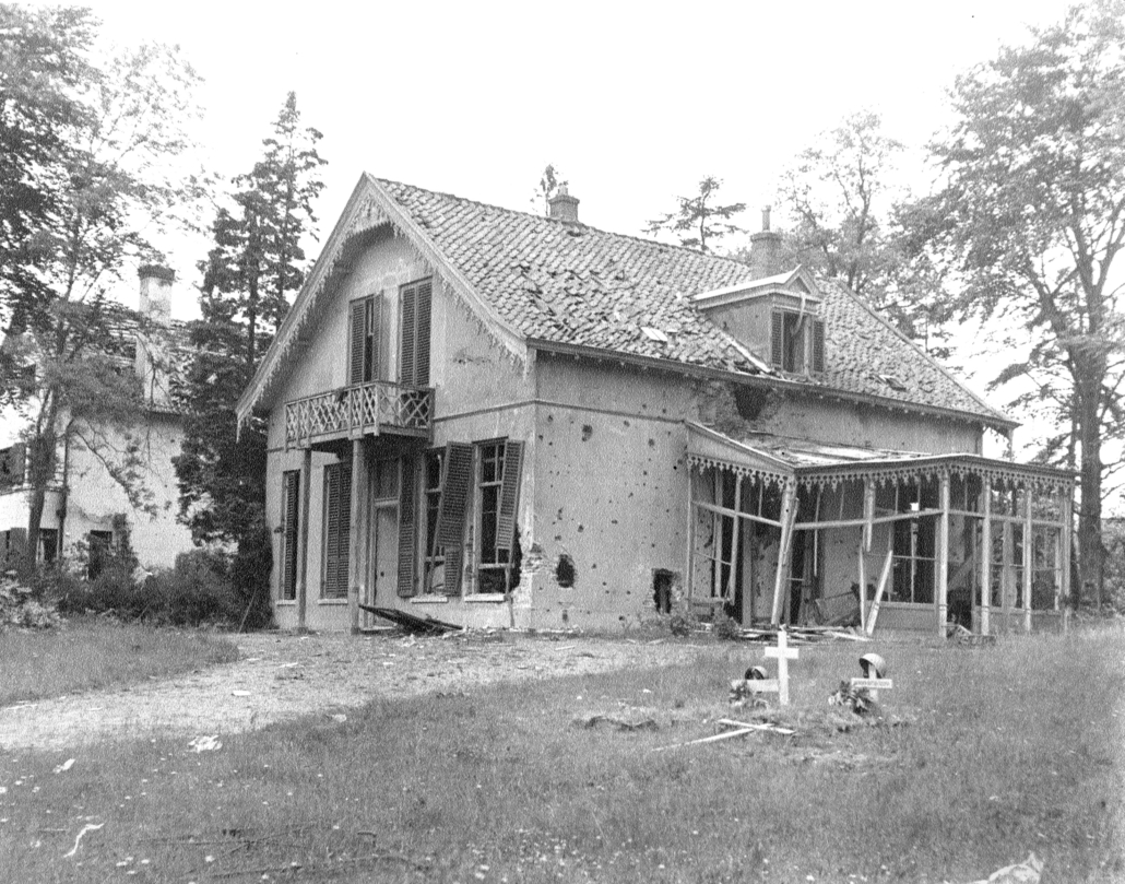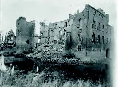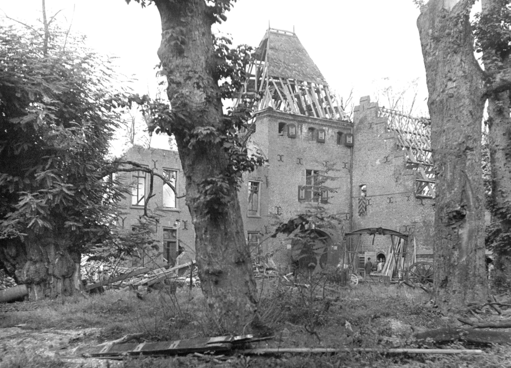 Hoe Kasteel Doorwerth in de staat kwam waarin fotograaf Johannes Leusden deze plek na de bevrijding vastlegde (zie de cover), is een verhaal dat we misschien nog weleens uit de doeken zullen doen in Airborne Magazine. Dat de vernieling slechts ten dele plaatsvond tijdens Market-Garden staat min of meer vast. Het zijn met name de begindagen van oktober 1944 geweest die het lot van de plek hebben bezegeld. De genadeklap kwam in januari 1945, toen volgens kasteelbewaarder Bran-derhorst het Duitse Feldwirtschaftskomman-do 10 de middeleeuwse waterburcht opblies met trotyl – beter bekend als dynamiet (bron: Geldersch Landschap en Kasteelen).