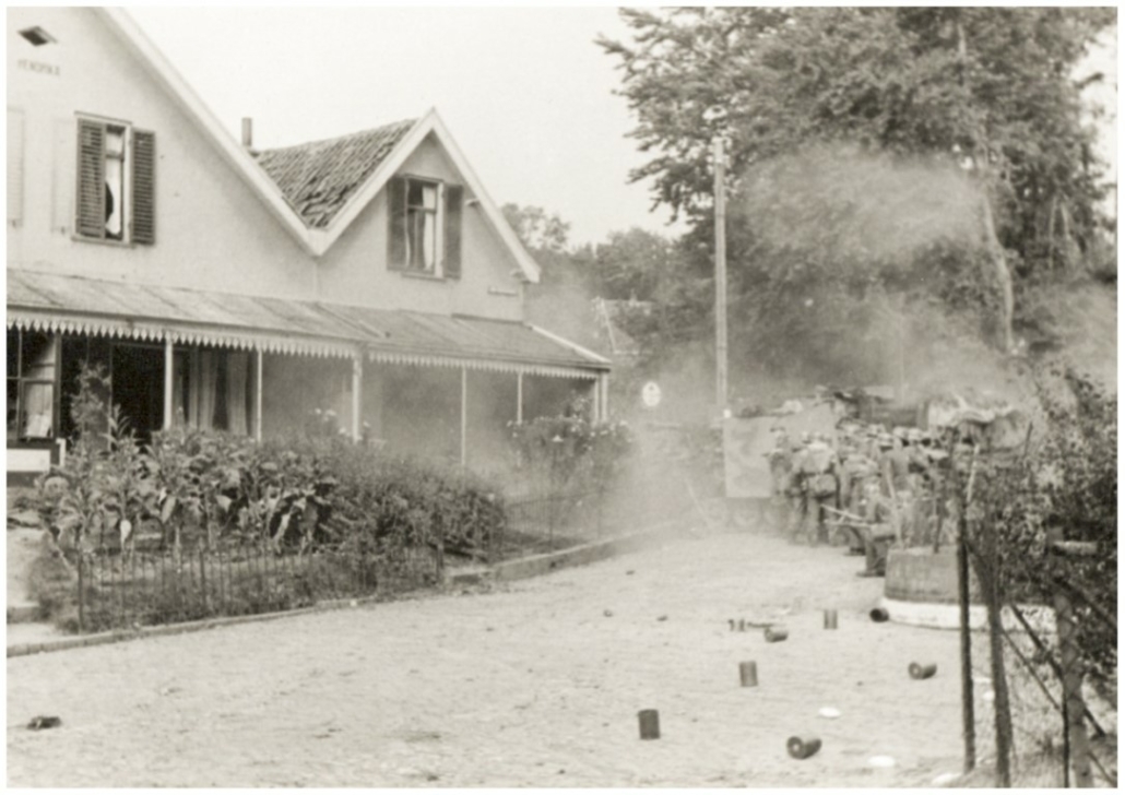 Op 12 maart 2021 raasde een storm over Nederland. In de Doorwerthsestraat in Heelsum viel die dag een grote dennenboom om bij de oprit van Henk Heijloo. In het gat dat achterbleef bevonden zich zeven complete 6-pounder granaten, een lege huls en de kop van een 6-pounder-granaat. De e-mail die Henk Heijloo ons daarop stuurde, ging vergezeld van een paar ‘bekende’ foto’s van het ouderlijk huis van zijn moeder: Utrechtseweg 149 in Ooster-beek. Hier woonde de familie Berghege totdat het pand in 1944 zwaar beschadigd raakte. De fotograaf van deze platen, Johannes Leusden, geniet in relatie tot de gebeurtenissen in september 1944 weinig naamsbekendheid. De hoogste tijd om de lens eens op deze man te richten.