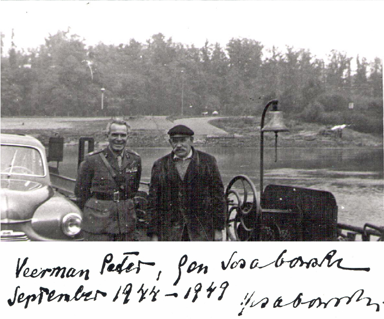 voor de opslag van spullen. Het was al snel na het begin van de luchtlandingen dat haar vader ‘s avonds in de berging moest zijn en tot zijn grote schrik plots oog in oog stond met een doodsbange Duitse soldaat. De jonge Duitser bleek deel uit te maken van de bediening van één van de luchtdoelkanonnen die de bruggen moesten beschermen. Hij was gevlucht en niet van zins terug te keren. Janna’s vader besloot hem te helpen door hem korte tijd verborgen te houden in het schuurtje. De deserteur besefte dat hij van zijn uniform af moest om zijn vlucht enige kans van slagen te geven. Met de burgerkleding die de veerman hem gaf, vervolgde de Duitser zijn weg. Als dank voor de hulp liet hij zijn ring achter.
