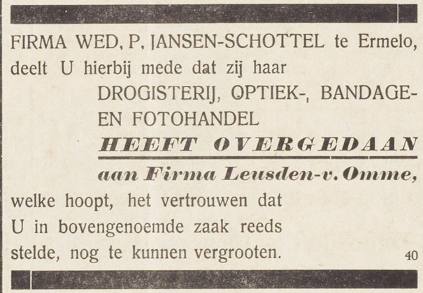Krantenadvertentie uit De Harderwijker, 30-07-1937.