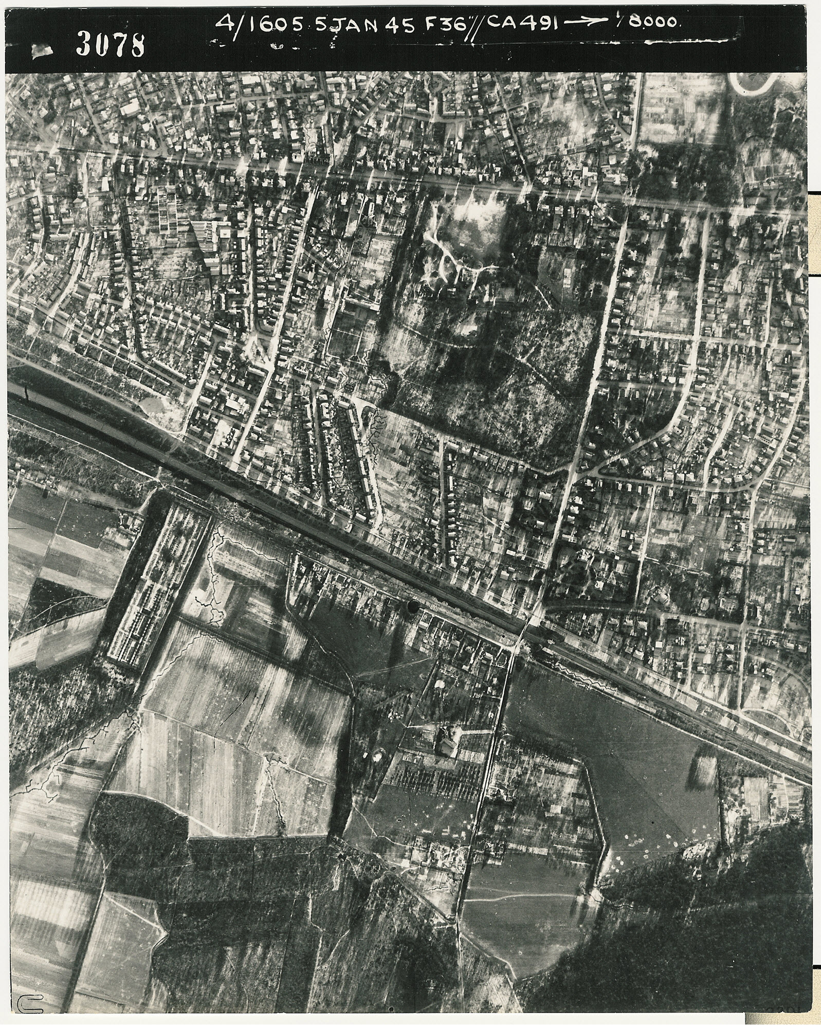 U bevindt zich hier: Home1 / Archief Korevaar2 / VVAM-archief3 / Luchtfoto’s4 / 5 januari 1945 nr3078 Crossroads, Stationsweg, Cemetery, Mil