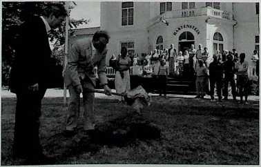 14 juli 2006. Burgemeester P.M. Bruinooge van Renkum opent de expositie ‘Burgers’, door het opgraven van ‘door burgers in oorlogstijd begraven kostbaarheden’. FOTO: BERRY DE REUS