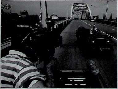 FOTO: BERRY DE REUS, 4 mei 2006. Joop Bal maakt opnamen op de Rijnbrug in Arnhem voor de documentaire over de geschiedenis van de film Theirs is the Glory.