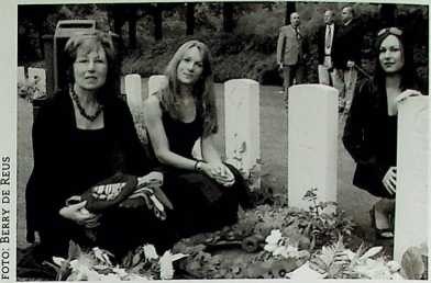 15 Juni 2006. Patricia Summers-Hartley (links) poseert met haar twee dochters bij het graf van haar vader Edward Hartley.