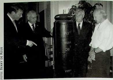 Op vrijdag 5 juli jl. heeft het bestuur van de Vereniging Vrienden, in aanwezigheid van een aantal belangstel-lenden, de gerestaureerde container overgedragen aan het bestuur van de Stichting Airborne Museum. Deze container type H zal in het vernieuwde Airborne Museum een permanente plaats krijgen bij het verhaal over het Verzet op de Veluwe. Voorlopig staat hij opgesteld bij de container type C op de eerste verdieping van het museum. (Wybo Boersma)