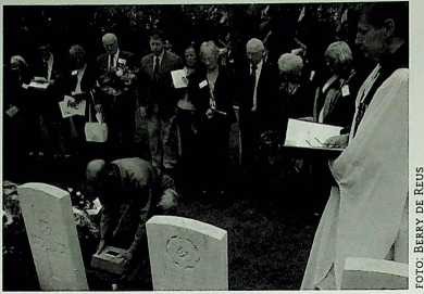 In aanwezigheid van familie en vrienden werd opl9 september het kistje met de as van Bill Fulton begraven op de Airborne Begraafplaats in Oosterbeek. Rechts The Very Reverend Dr. Jeff Cuttell, die de korte plechtigheid leidde.