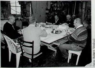In de schuur van Chris van Roekel maakt een groep vrijwilligers de Nieuwsbrieven en Ministeries klaar om te versturen (11 november 2008).