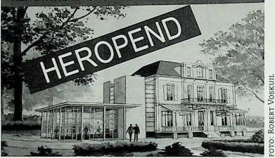 Het bord dat maandenlang voor het museum stond met informatie over het renovatie-project kon in september voorden voorzien van de opdruk ‘Heropend’.