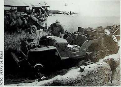 In de weken voor de opening van het museum moest nog keihard gewerkt worden om alles op tijd klaar te krijgen. Hier zijn Hans van de Velden en Michel Clements bezig met het opknappen van de Jeep op het ‘landingsterrein’ in de ‘Airborne Experience 1944’.