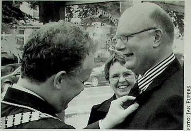 Op 11 oktober ontving Luitenant-kolonel Gerrit Pijpers uit handen van burgemeester Gebben de erepenning van de gemeente Renkum. Op de achtergrond Gerrits echtgenote Johanna.