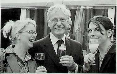 Tijdens de receptie ter gelegenheid van de heropening van het Airborne Museum op 20 september jl. laten de medewerkers van het museum Ingrid Maan, Berry de Reus en Suzanne Belleman hun drankje goed smaken. Ze hebben alle reden om te lachen, want het musum is op tijd gereed gekomen, mede door hun harde werken.