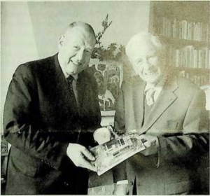 23 april 200’1. Auteur Chris van Roekel overhandigt het eerste exemplaar van hel boek ‘The Torn Horizon’ aan de heer jan ter Horst.