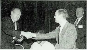 Tijdens de Algemene Ledenvergadering van de Vereniging Vrienden op 6 april jl. heeft Chris van Roekel afscheid genomen als voorzitter. Hij is opge-volgd door Ben Kolster Chris heeft 19 jaar zitting gehad in het bestuur, en in die periode heeft hij een ongelooflijke hoeveelheid werk verzet van zeer uiteenlopende aard. Chris kwam in het bestuur op 12 maart 1983, toen Jan Smits voorzitter was. Vanaf het begin was het duidelijk dat hij bruiste van energie en nieuwe ideeën. Een van zijn eerste voorstellen was het toevoegen aan de Nieuwsbrief van een zogenaamde ‘Ministory’, waarin een bepaald op zichzelf staand aspect van de Slag om Arnhem aan de orde kon komen. Zelf schreef hij de eerste. Het was het verhaal over het gebruik van postduiven bij de Slag om Arnhem, en het verscheen bij Nieuwsbrief no. 10, van mei 1983. Vele Ministeries van zijn hand zouden nog volgen . Ook de organisatie van themadagen pakte hij voort-varend aan. Zo hield de vereniging onder zijn leiding de eerste grote themadag op 2 juli 1983. Wandel-, bus- en zelfs boottochten volgden. Later stelde hij voor om ook excursies naar het buitenland te organiseren. Dit resulteerde in de zeer succesvolle reizen naar Normandië, Engeland, en naar Hamminkeln in Duitsland. Als oud-hoofdonderwijzer heeft kennisoverdracht aan kinderen altijd zijn speciale belangstelling gehad. In februari 1984 nam hij het initiatief voor het ‘Scholenproject’, waarbij leerlingen op een bijzondere educatieve manier in het Airborne Museum kennis kunnen nemen van de gebeurtenissen in september 1944. Het bleek een schot in de roos, want de belang-stelling voor dit project was, en is nog steeds, groot. Het moet Chris enorme voldoening hebben gegeven, toen hij op 22 juni van het vorig jaar de 50.000ste deelnemende leerling in het Airborne Museum mocht verwelkomen.