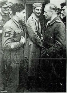 De ondervraging van Regimental Quartermaster Sergeant Dave Morris (ll’h Battalion), nadat hij op 24 september 1944 in de Beneden Weverstraat in Oosterbeek krijgsgevangen was gemaakt. Waar is deze (Duitse) foto genomen? (foto: collectie R.Voskuil)