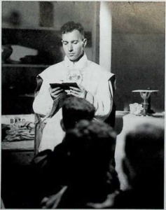 Pater Dijker tijdens de opnamen van de film Theirs is the Glory in Hotel De Tafelberg in augiistns/september 1945. (foto: collectie R. Voskuil)