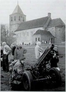 Tijdens de excursie op 29 maart jl., die was gewijd aan de posities van het Light Regiment Royal Artillery bij de Oude Kerk in Oosterbeek, was een 75mm kanon opgesteld op een van de oorspronkelijke locaties in de uiterwaarden achter de kerk.